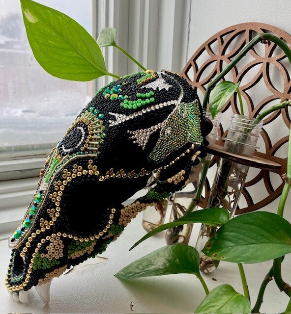 Notre engagement est de valoriser chaque trophée ou souvenir de chasse en une pièce unique qui reflète votre passion et vos goûts. Chaque œuvre est confectionnée avec soin, de manière artisanale, pour immortaliser vos moments les plus mémorables. Parcourez notre galerie pour voir des exemples de nos réalisations et laissez-vous inspirer par les possibilités infinies de personnalisation que nous offrons. Que ce soit un macramé sur crâne ou bois de cerf, un crâne sertie de billes ou pierres ou un design sur mesure à votre image, nous sommes là pour concrétiser votre vision.