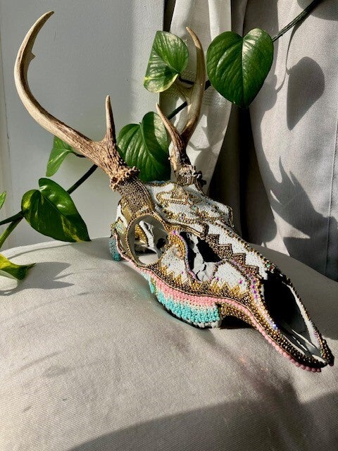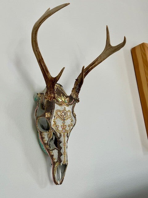 Crâne de cerf ou d'orignal sertie de perles ou de pierres